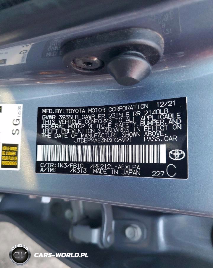 Copart Nr: C-46182476 VIN: JTDEPMAE3N3008991 Port: Los Angeles, CA