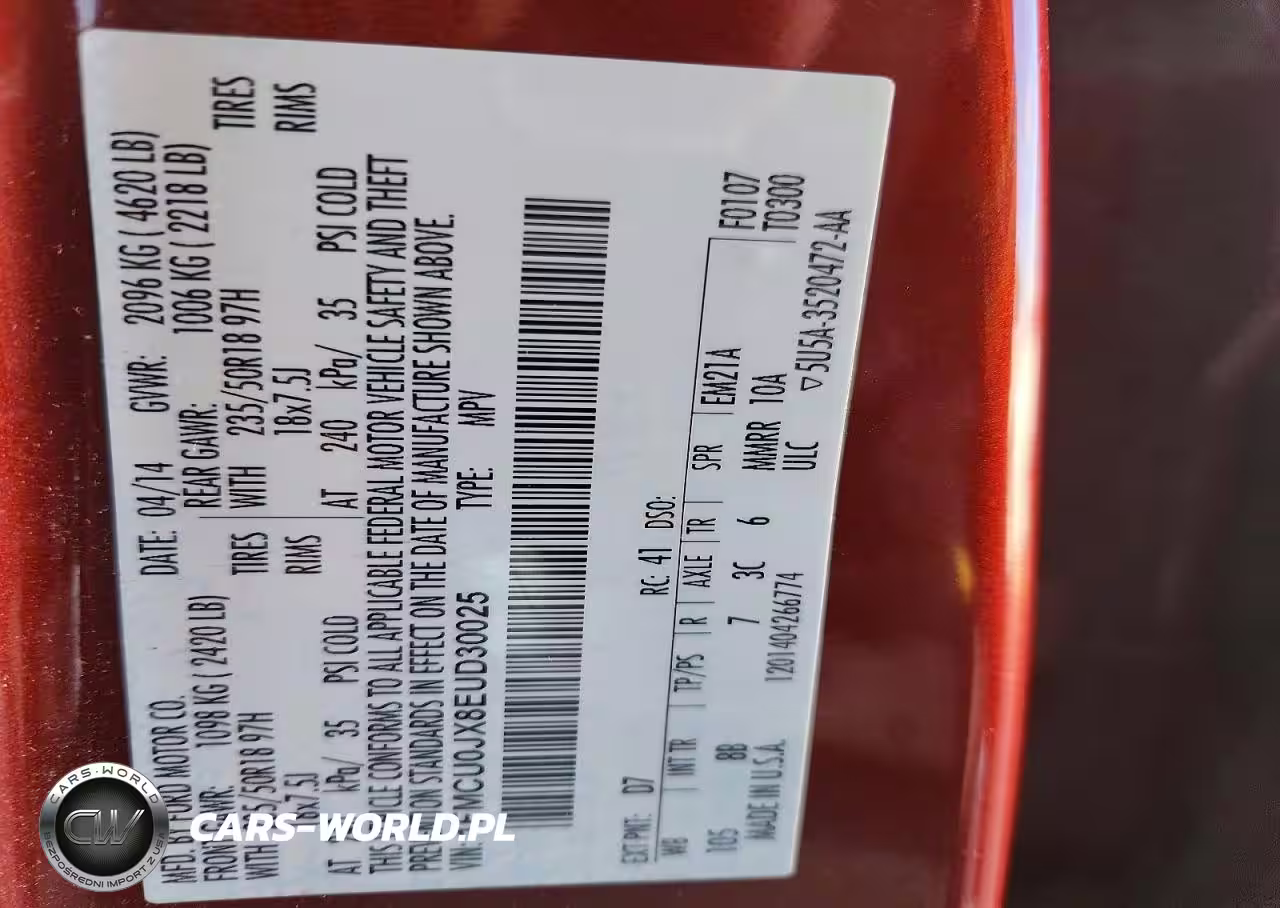 Copart Nr: C-46182996 VIN: 1FMCU0JX8EUD30025 Port: Indianapolis, IN