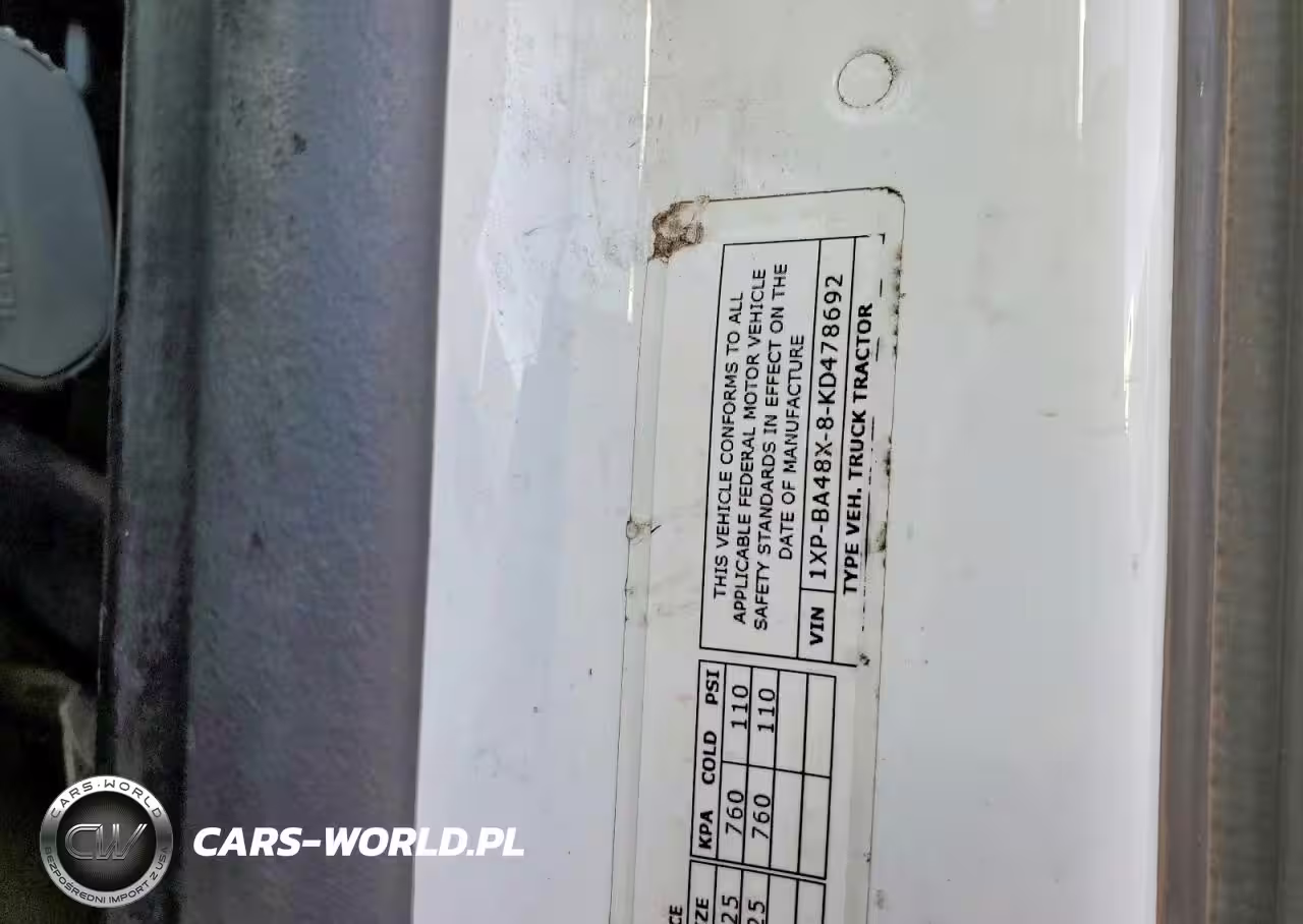 Copart Nr: C-46192566 VIN: 1XPBA48X8KD478692 Port: Houston, TX