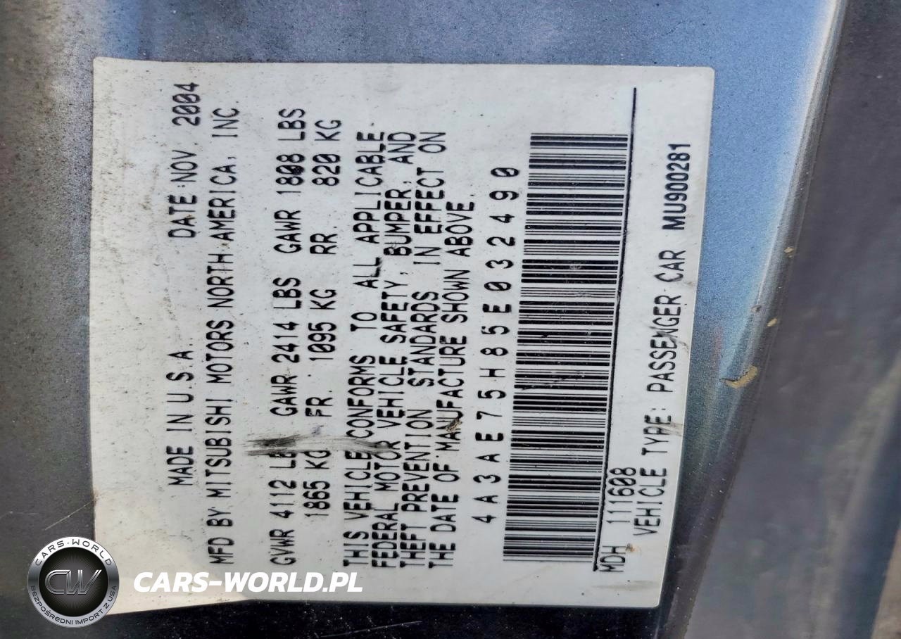 Copart Nr: C-46216296 VIN: 4A3AE75H85E032490 Port: Savannah, GA