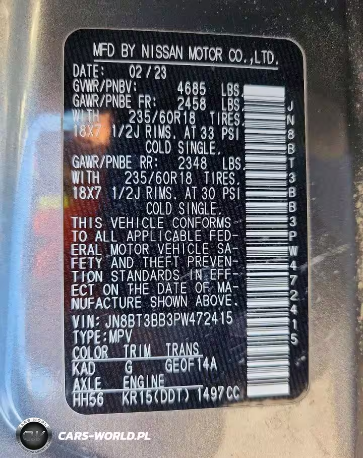 Copart Nr: C-46223876 VIN: JN8BT3BB3PW472415 Port: Indianapolis, IN