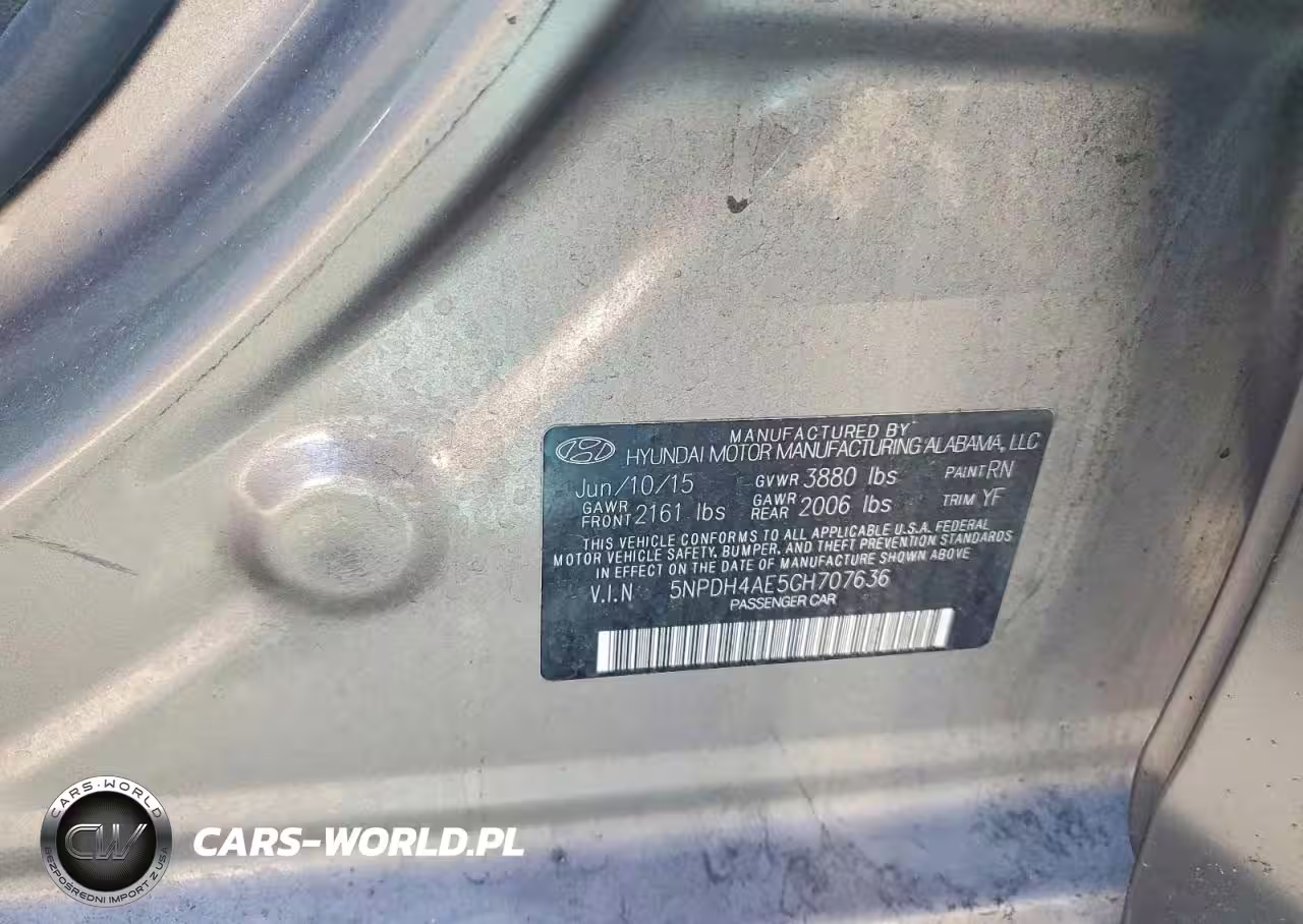 Copart Nr: C-46224666 VIN: 5NPDH4AE5GH707636 Port: Los Angeles, CA