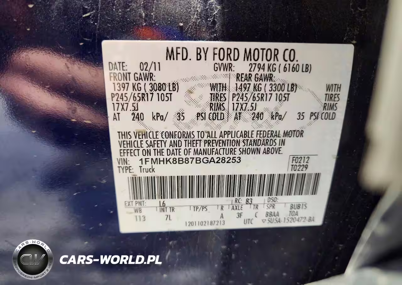 Copart Nr: C-46241966 VIN: 1FMHK8B87BGA28253 Port: Indianapolis, IN