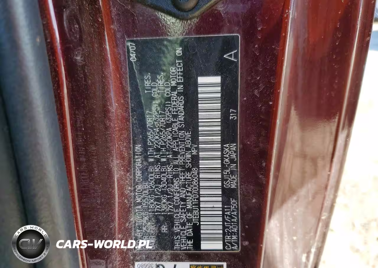 Copart Nr: C-46265236 VIN: JTEBU11F070086048 Port: Indianapolis, IN
