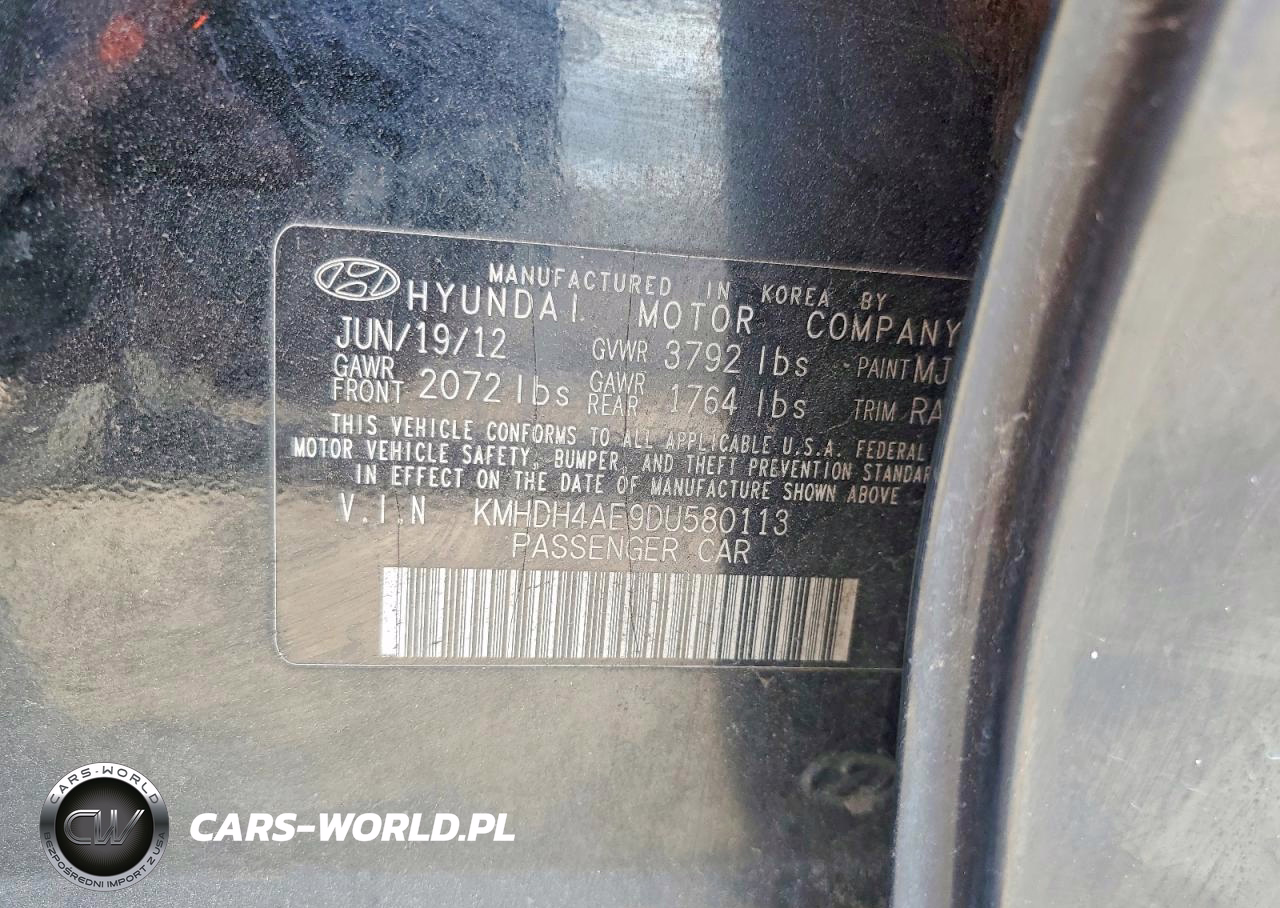 Copart Nr: C-46267136 VIN: KMHDH4AE9DU580113 Port: Savannah, GA