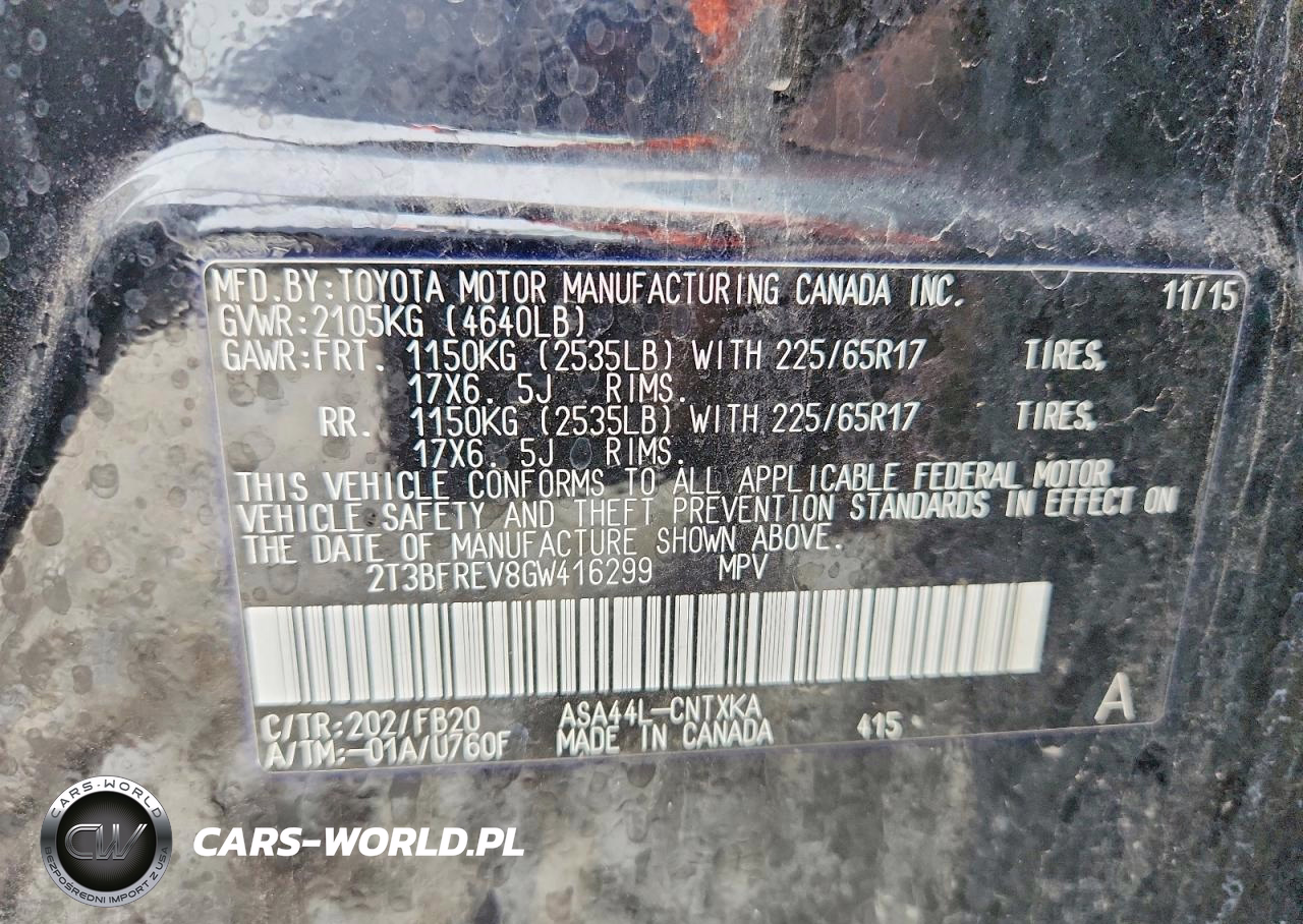 Copart Nr: C-46271886 VIN: 2T3BFREV8GW416299 Port: Indianapolis, IN
