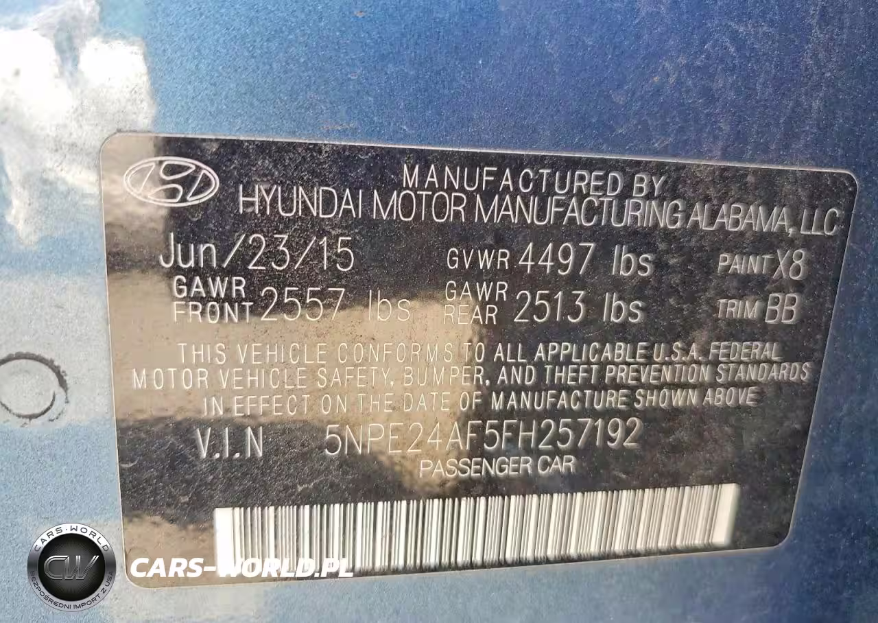 Copart Nr: C-46288726 VIN: 5NPE24AF5FH257192 Port: Los Angeles, CA