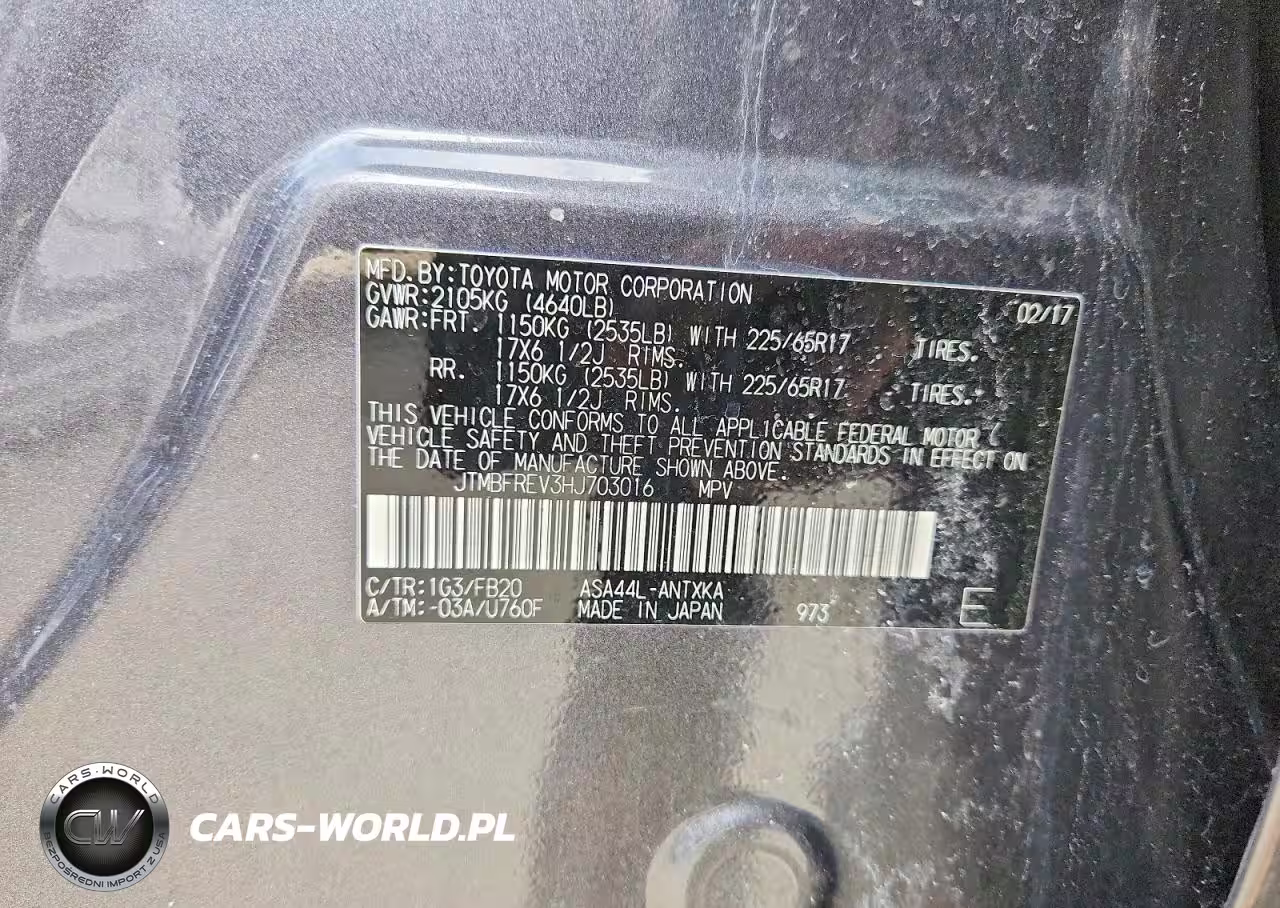 Copart Nr: C-46294276 VIN: JTMBFREV3HJ703016 Port: Elizabeth, NJ