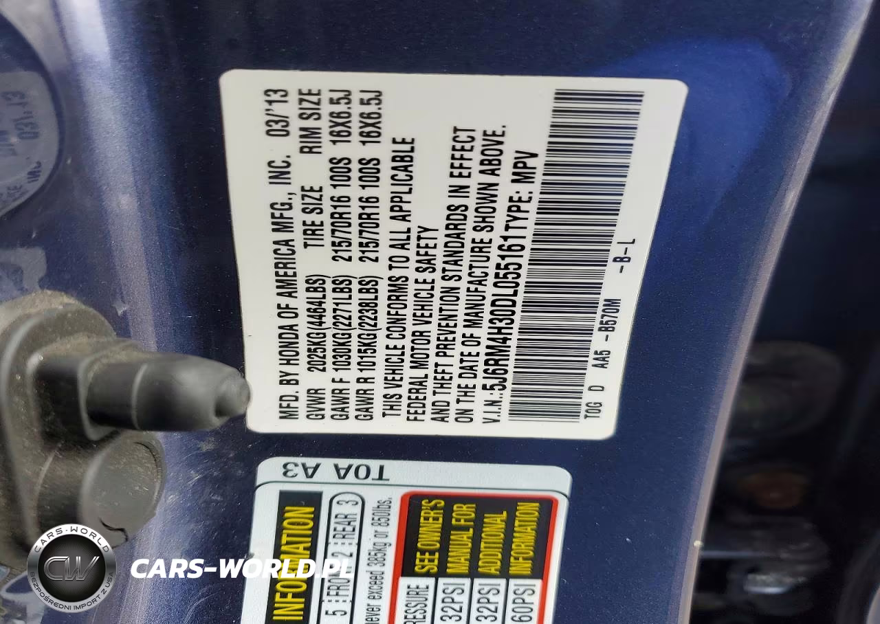 Copart Nr: C-46298246 VIN: 5J6RM4H30DL055161 Port: Indianapolis, IN