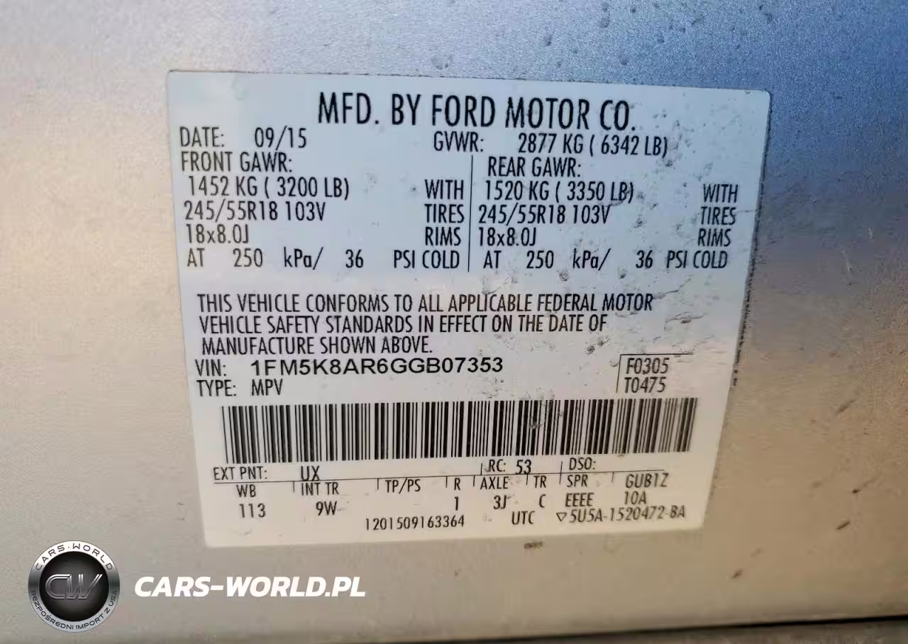 Copart Nr: C-46298546 VIN: 1FM5K8AR6GGB07353 Port: Houston, TX