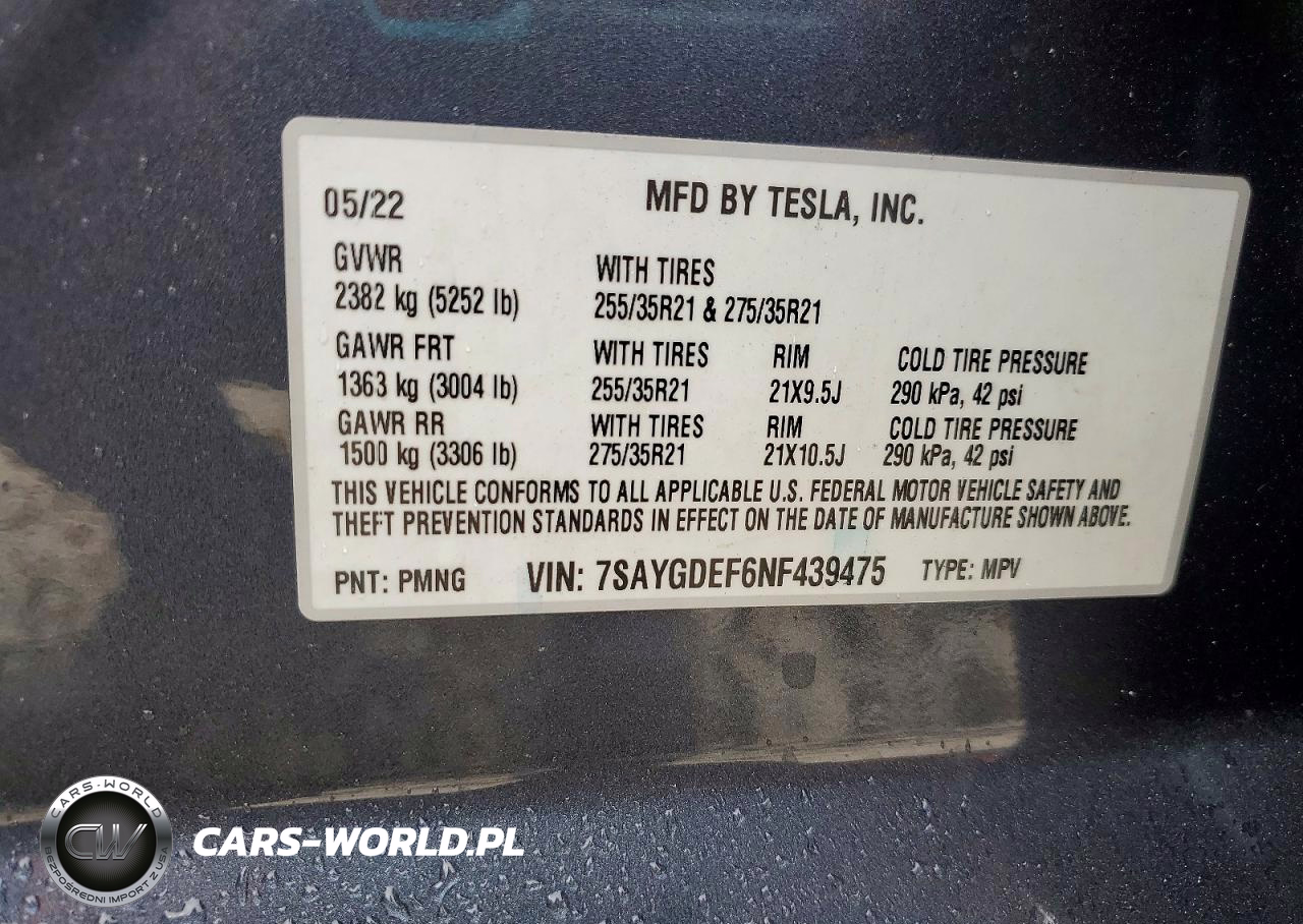Copart Nr: C-46307966 VIN: 7SAYGDEF6NF439475 Port: Savannah, GA