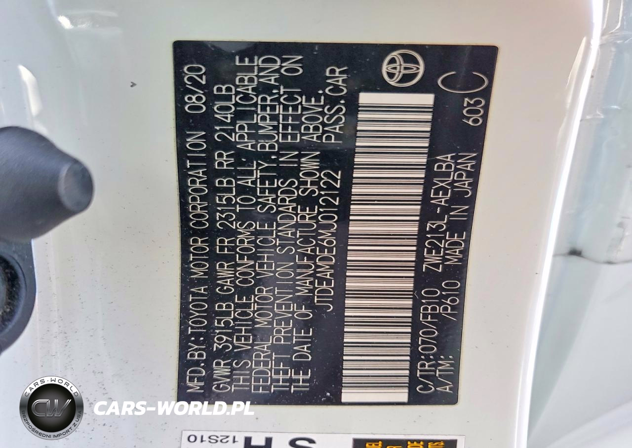 Copart Nr: C-46312326 VIN: JTDEAMDE6MJ012122 Port: Los Angeles, CA