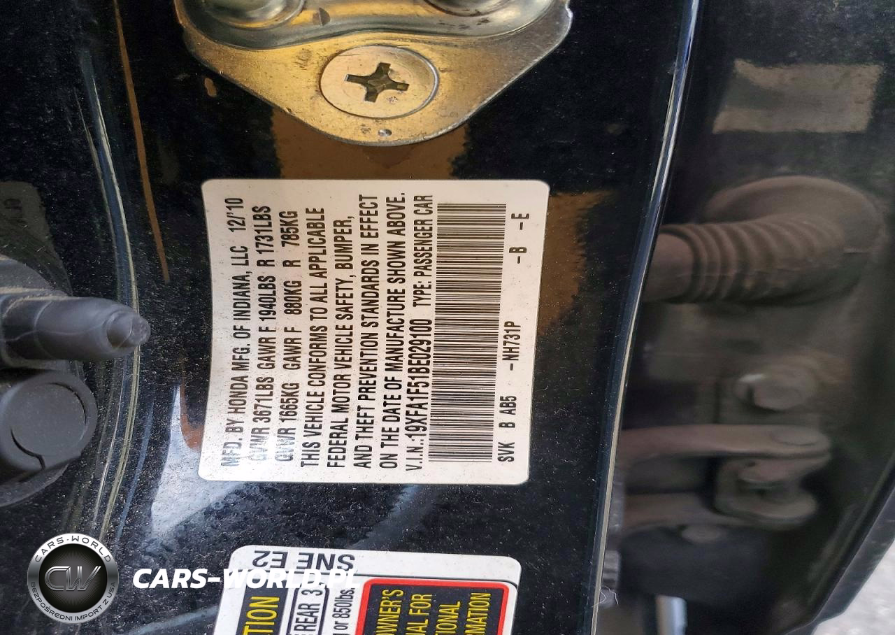 Copart Nr: C-46312926 VIN: 19XFA1F51BE029100 Port: Houston, TX