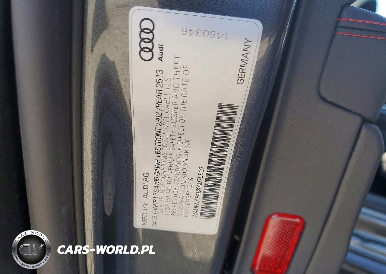 Copart Nr: C-46323776 VIN: WAUFNAF48KA075907 Port: Los Angeles, CA