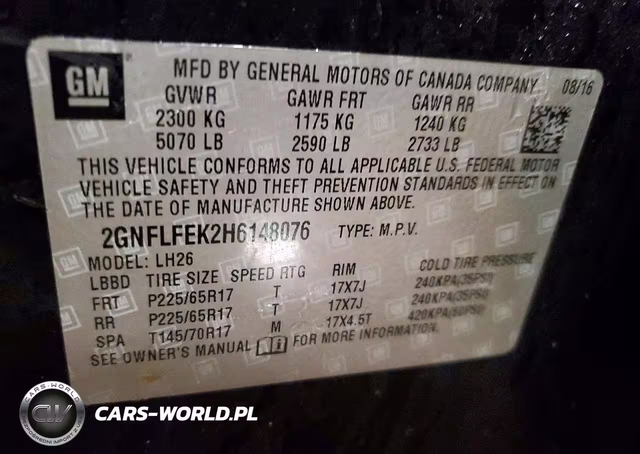 Copart Nr: C-46327396 VIN: 2GNFLFEK2H6148076 Port: Indianapolis, IN