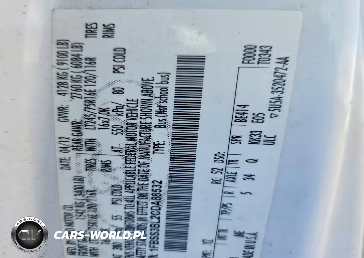 Copart Nr: C-46328206 VIN: 1FBSS3BL2CDA88532 Port: Indianapolis, IN