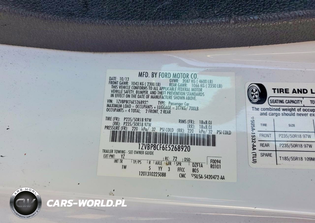 Copart Nr: C-46329916 VIN: 1ZVBP8CF6E5268920 Port: Los Angeles, CA
