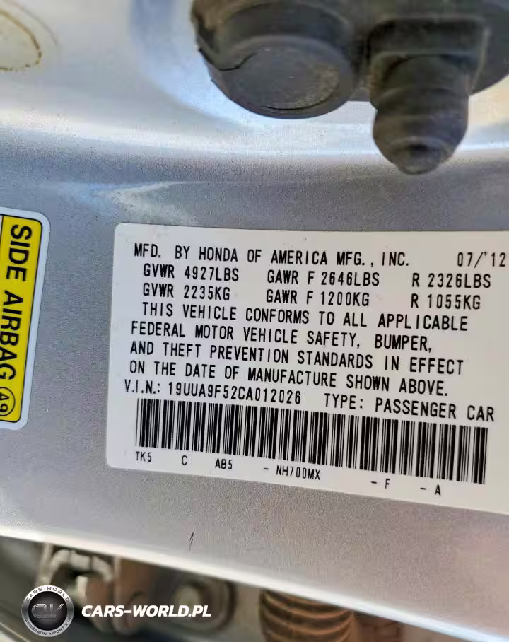 Copart Nr: C-46334846 VIN: 19UUA9F52CA012026 Port: Los Angeles, CA