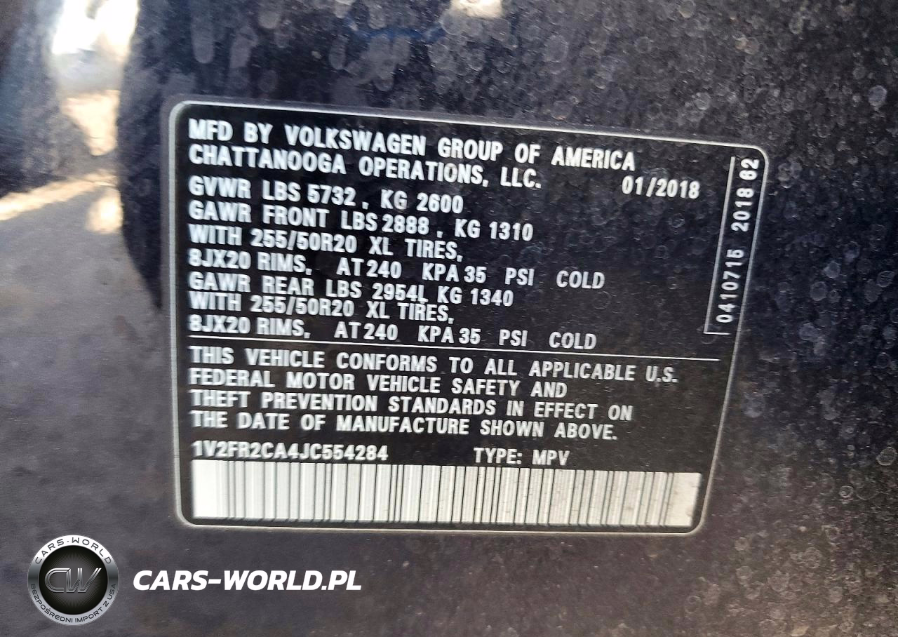 Copart Nr: C-46340616 VIN: 1V2FR2CA4JC554284 Port: Los Angeles, CA