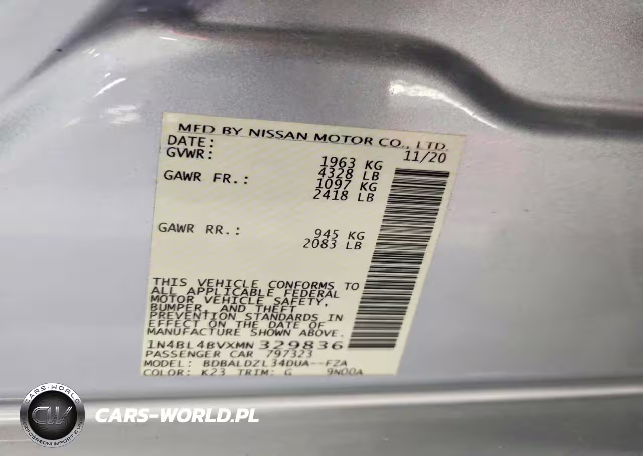 Copart Nr: C-46345296 VIN: 1N4BL4BVXMN329836 Port: Indianapolis, IN