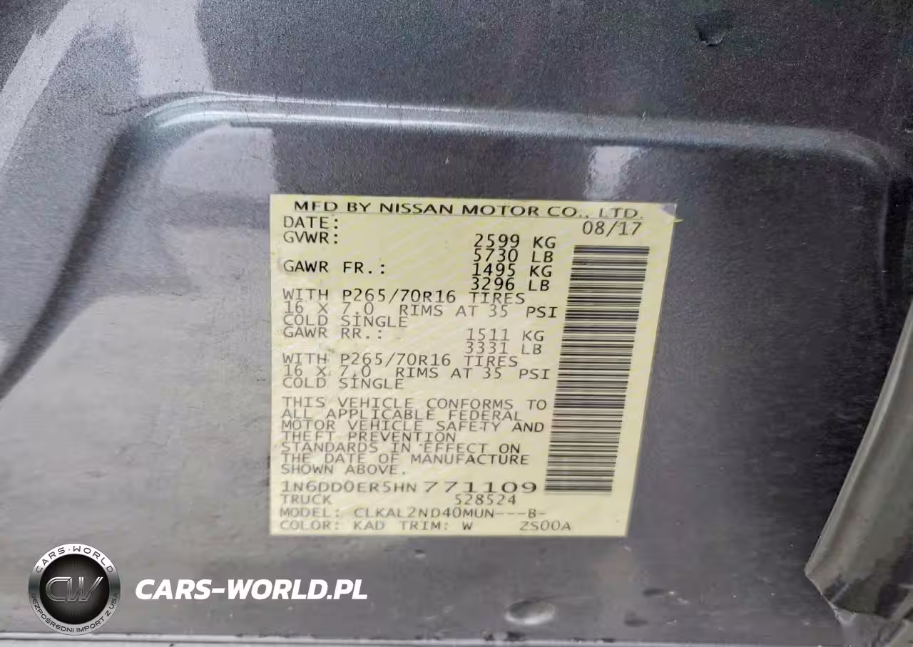 Copart Nr: C-46349136 VIN: 1N6DD0ER5HN771109 Port: Savannah, GA
