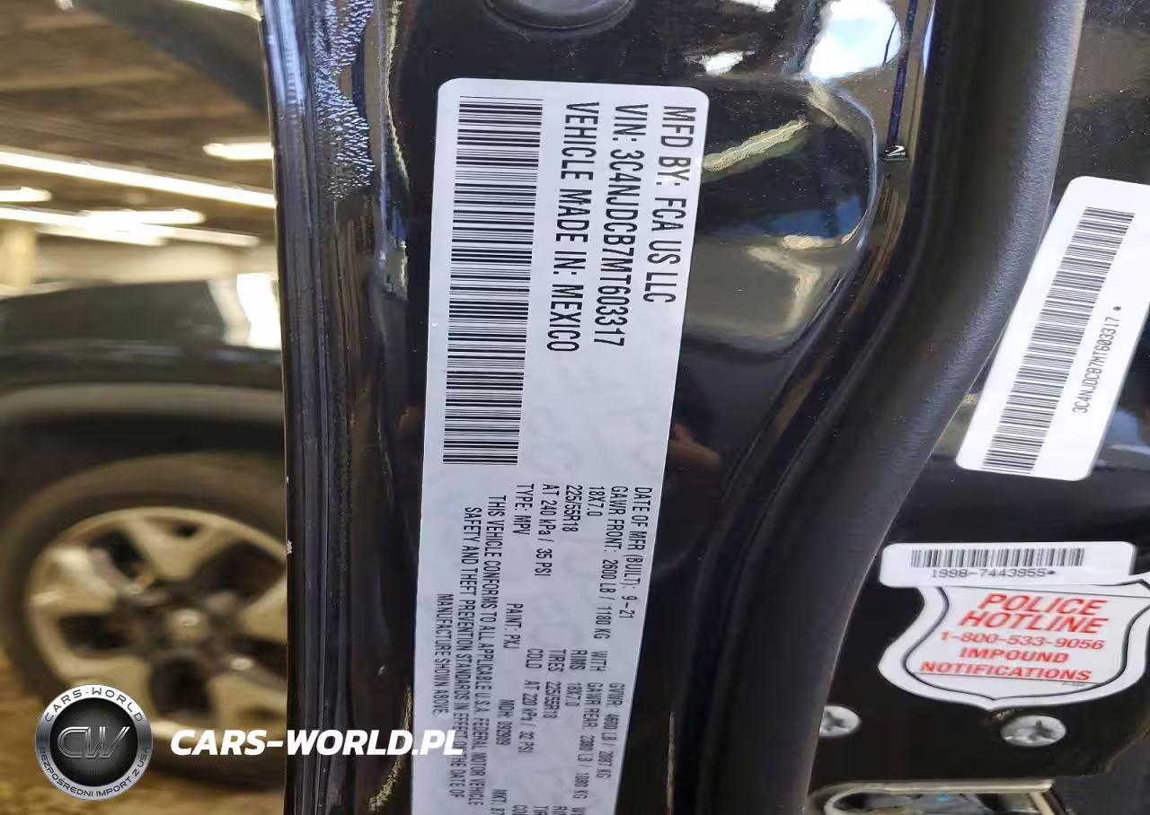 Copart Nr: C-46364306 VIN: 3C4NJDCB7MT603317 Port: Indianapolis, IN