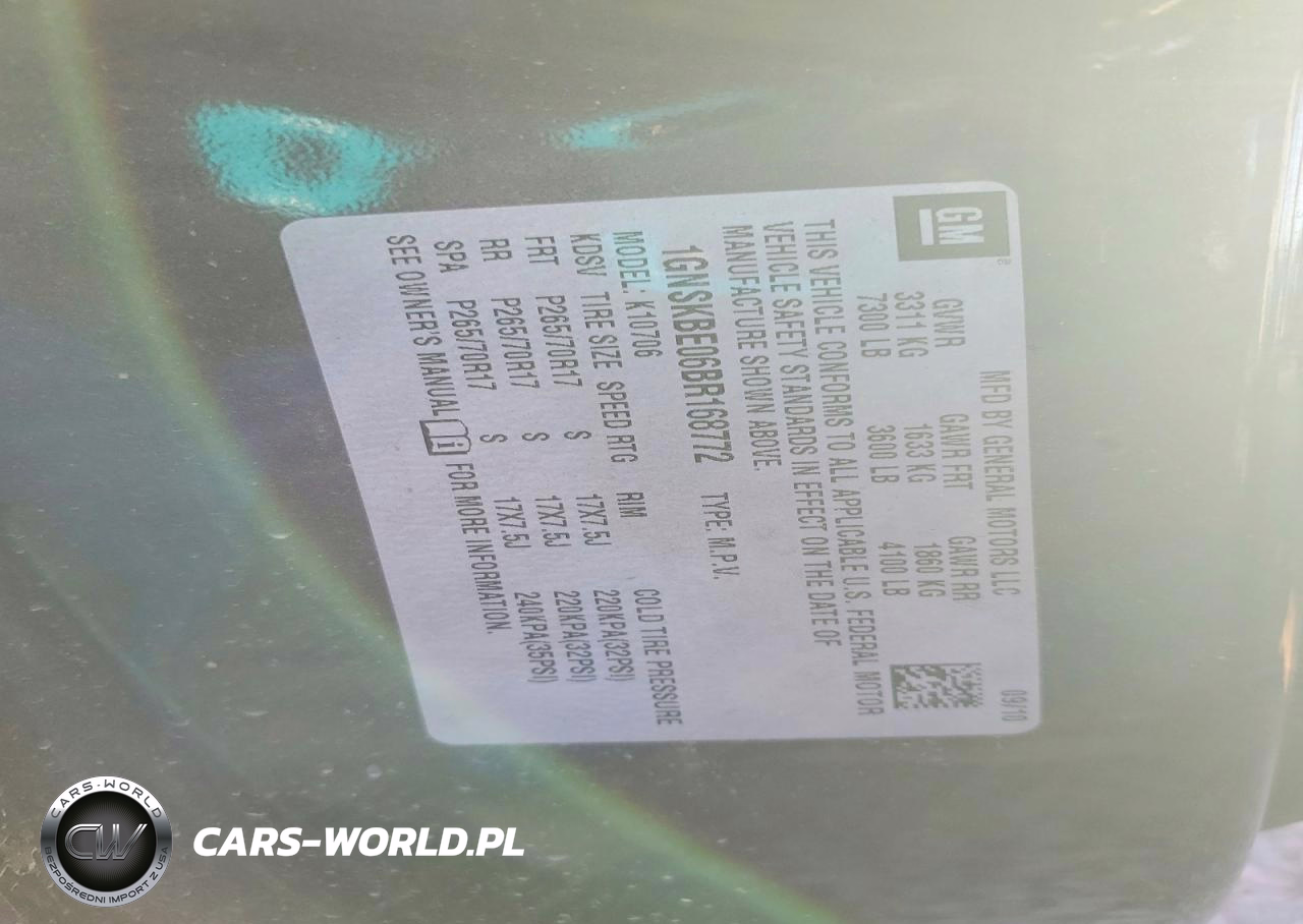 Copart Nr: C-46403586 VIN: 1GNSKBE06BR168772 Port: Los Angeles, CA