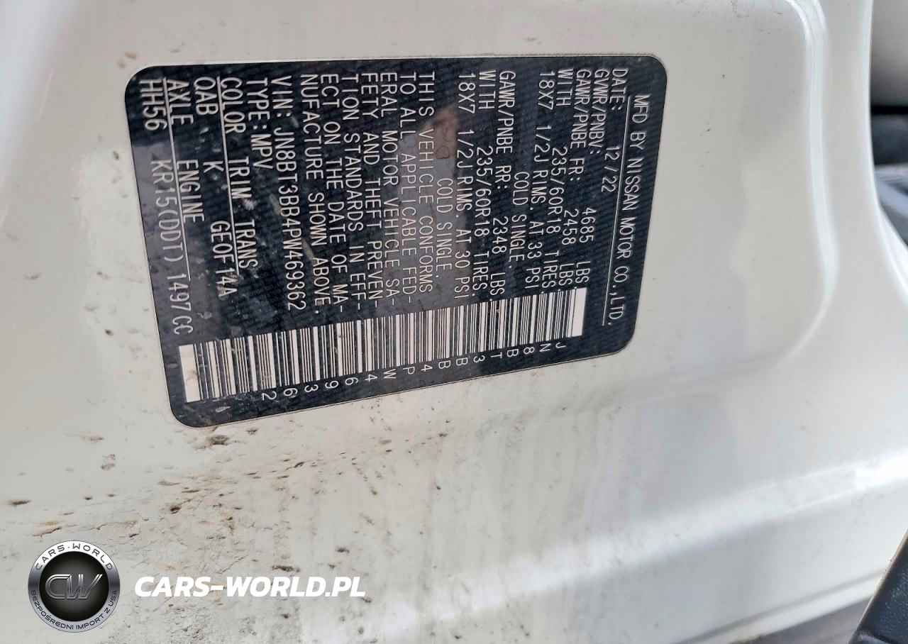 Copart Nr: C-46409816 VIN: JN8BT3BB4PW469362 Port: Indianapolis, IN
