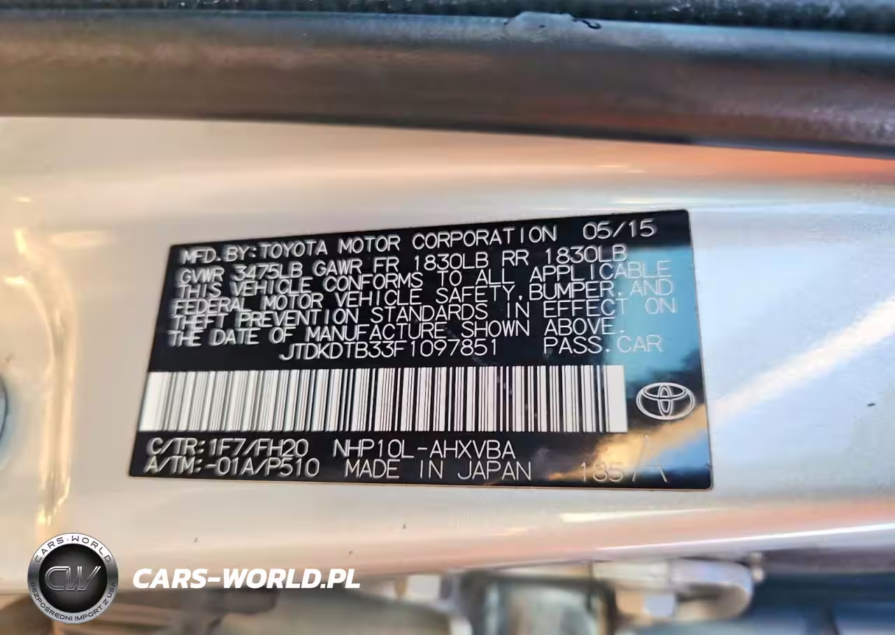 Copart Nr: C-46432126 VIN: JTDKDTB33F1097851 Port: Los Angeles, CA