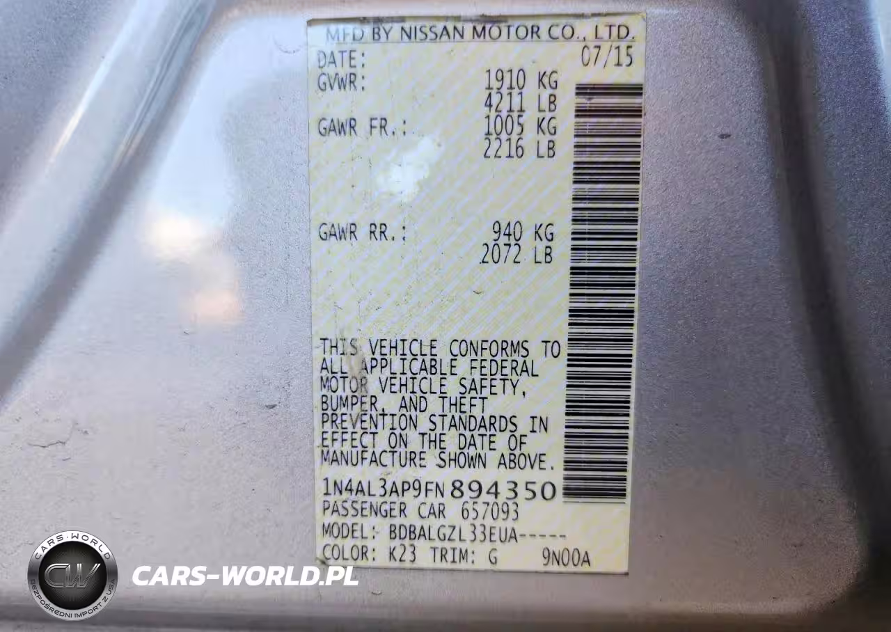 Copart Nr: C-46432646 VIN: 1N4AL3AP9FN894350 Port: Los Angeles, CA