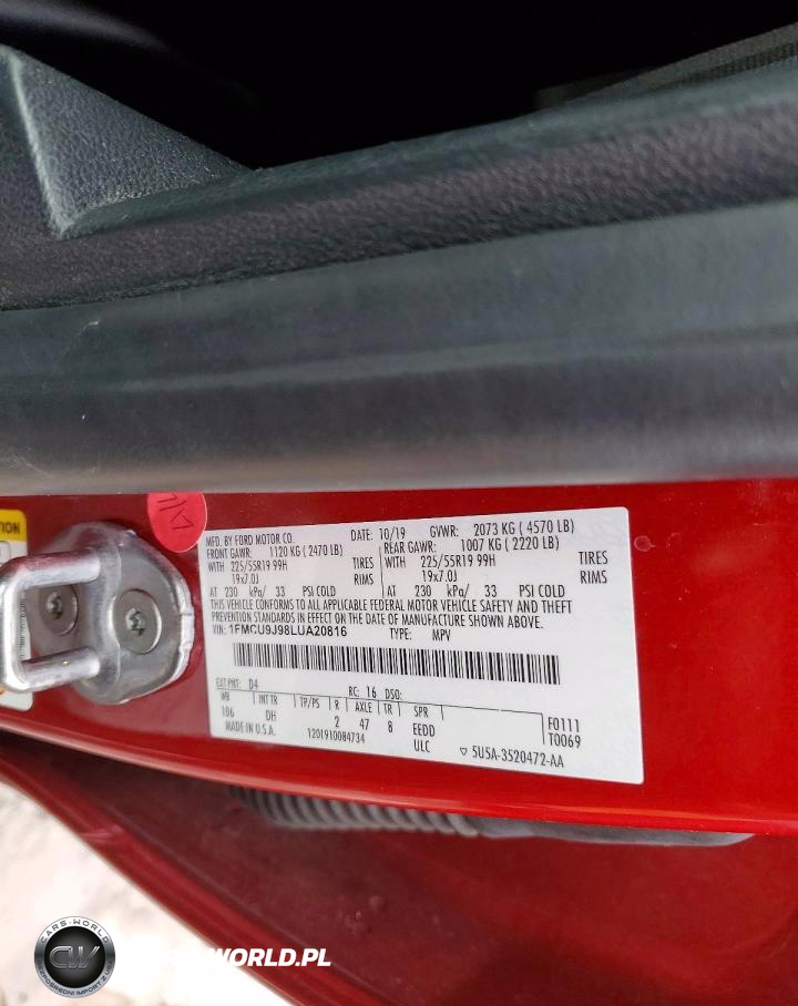 Copart Nr: C-46445156 VIN: 1FMCU9J98LUA20816 Port: Elizabeth, NJ