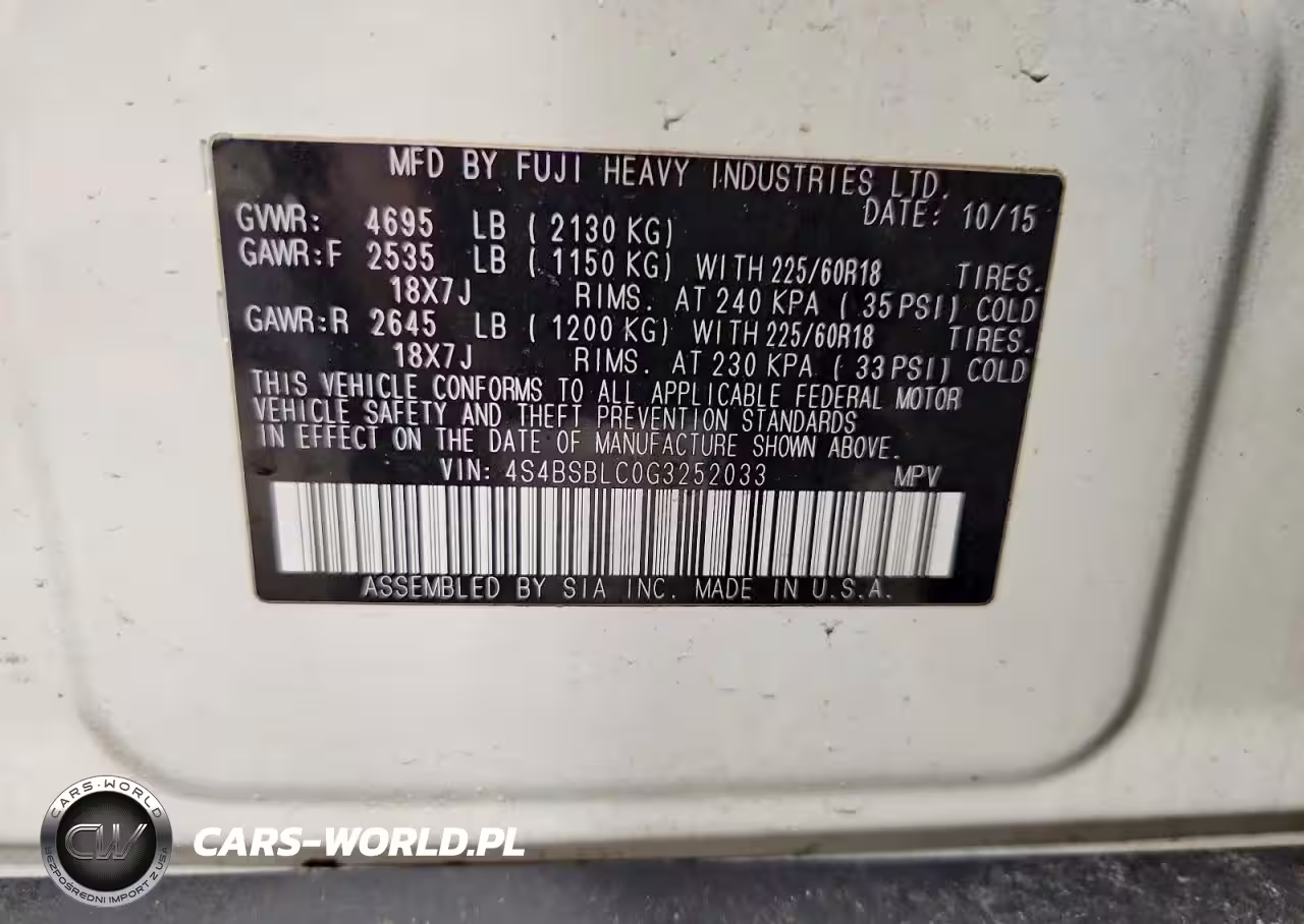 Copart Nr: C-46455286 VIN: 4S4BSBLC0G3252033 Port: Indianapolis, IN