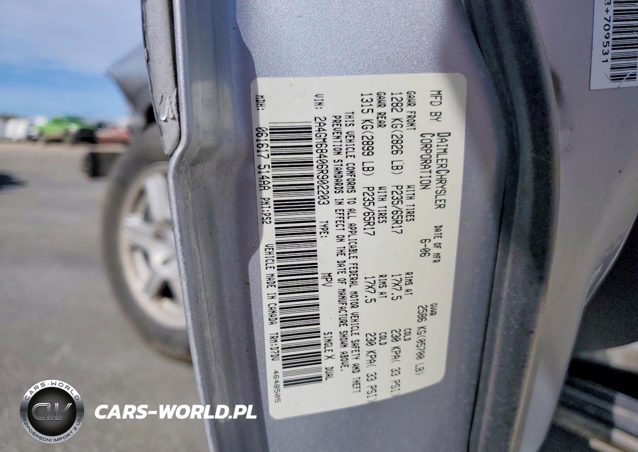 Copart Nr: C-46491136 VIN: 2A4GM68406R902203 Port: Los Angeles, CA