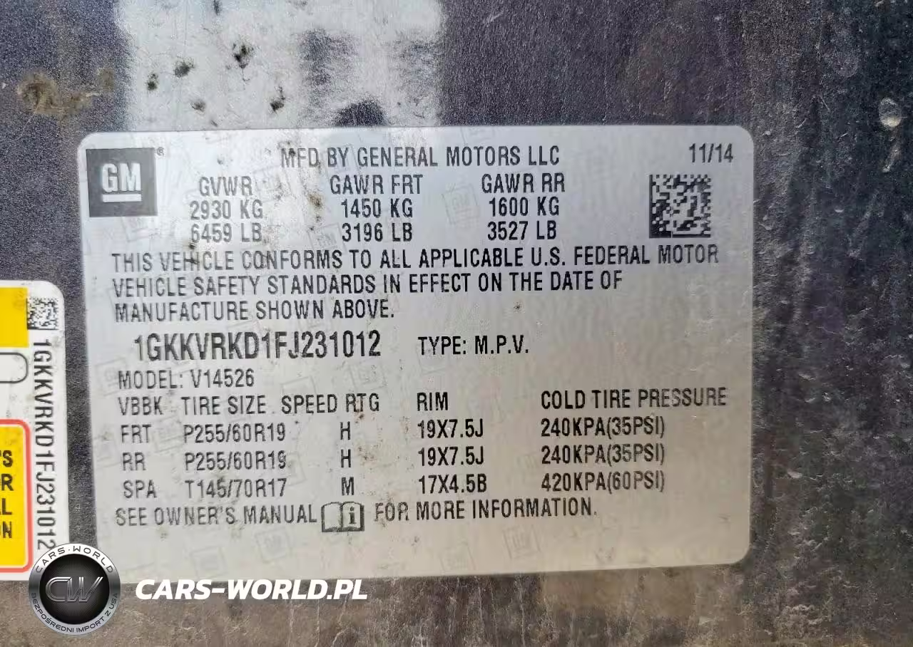Copart Nr: C-46502726 VIN: 1GKKVRKD1FJ231012 Port: Indianapolis, IN