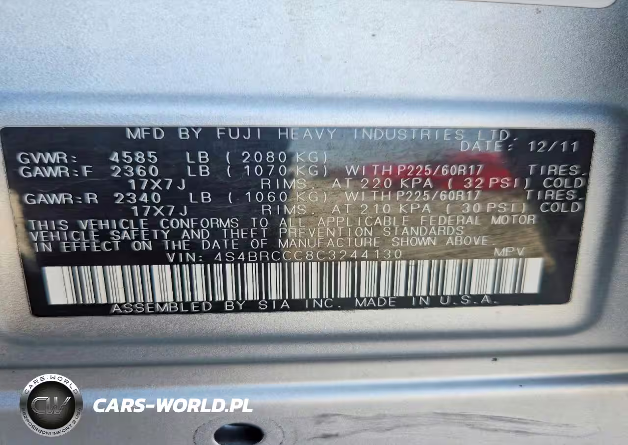 Copart Nr: C-46503816 VIN: 4S4BRCCC8C3244130 Port: Indianapolis, IN