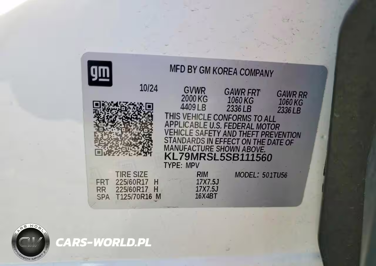 Copart Nr: C-46521036 VIN: KL79MRSL5SB111560 Port: Los Angeles, CA