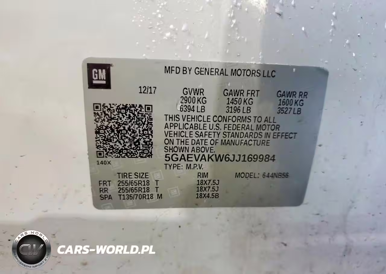 Copart Nr: C-46544046 VIN: 5GAEVAKW6JJ169984 Port: Indianapolis, IN