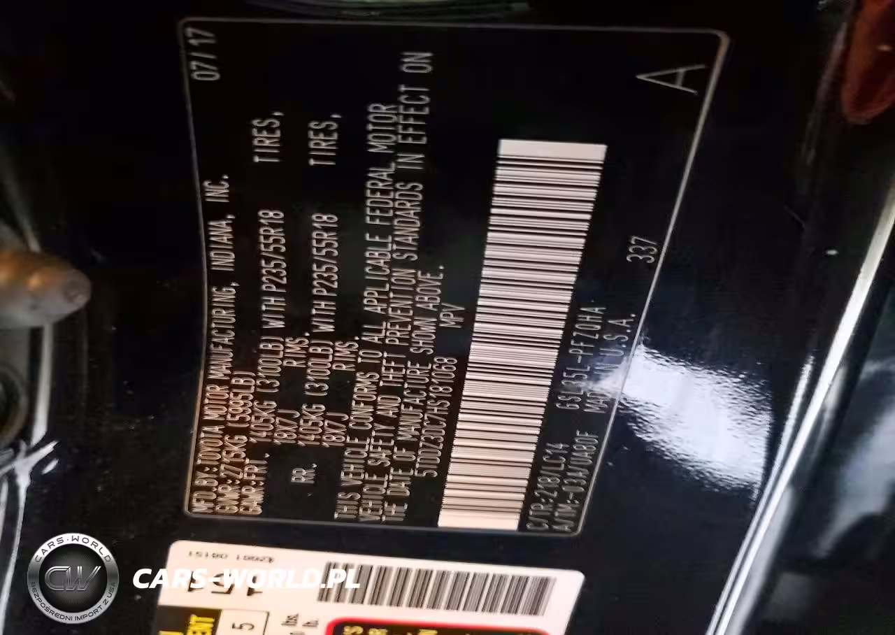 Copart Nr: C-46550146 VIN: 5TDDZ3DC7HS181068 Port: Indianapolis, IN