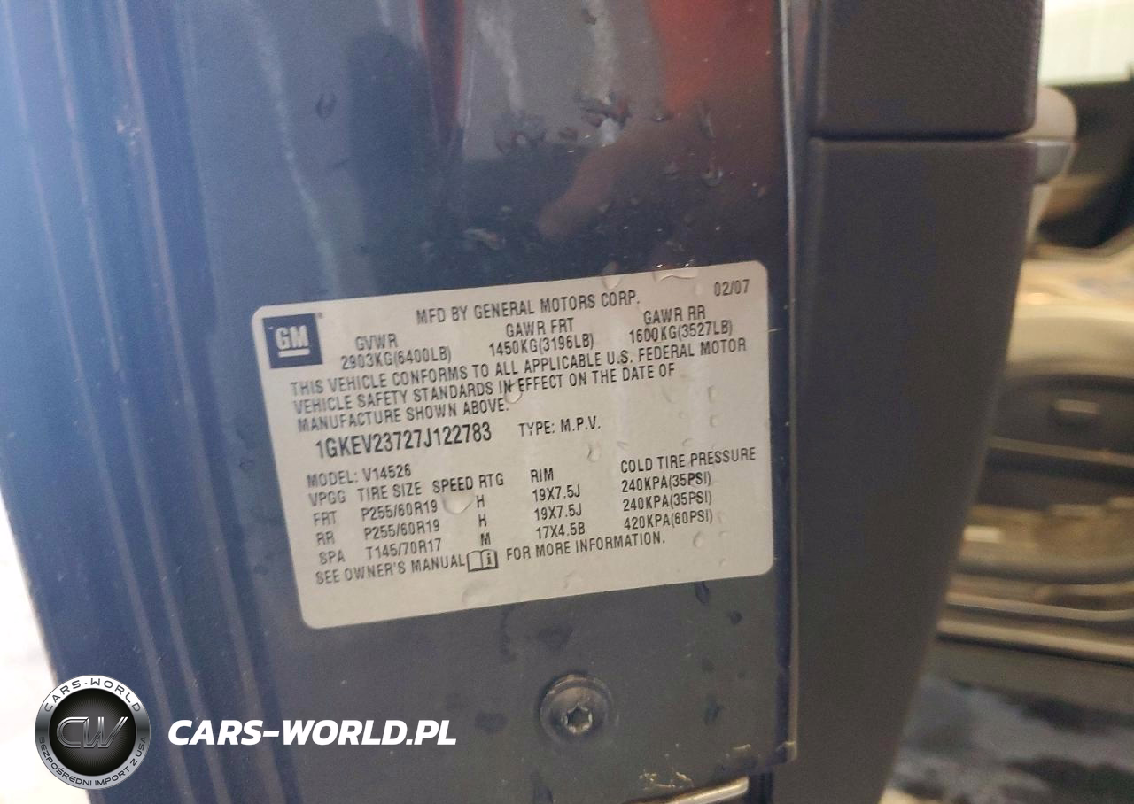 Copart Nr: C-46553476 VIN: 1GKEV23727J122783 Port: Savannah, GA