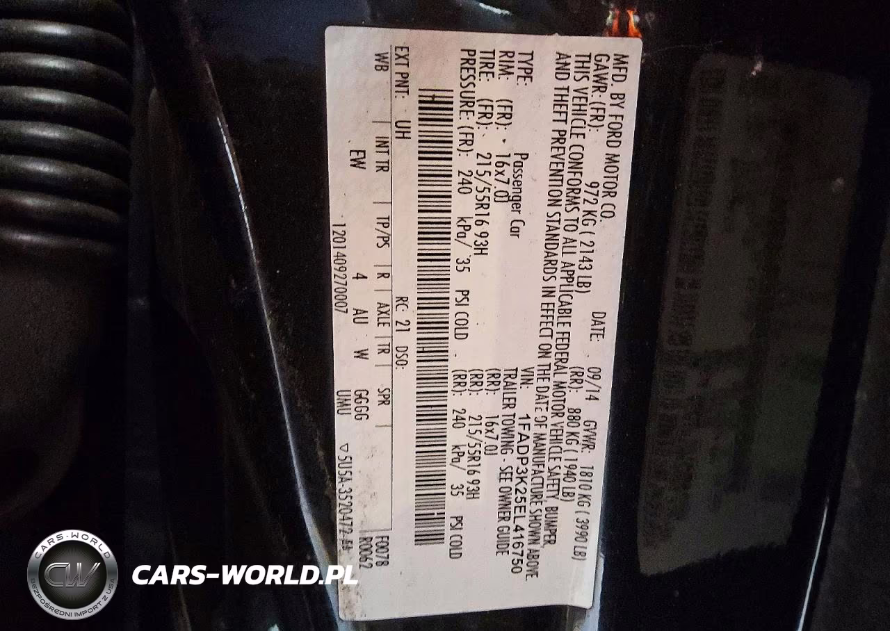 Copart Nr: C-46553516 VIN: 1FADP3K25EL416750 Port: Savannah, GA