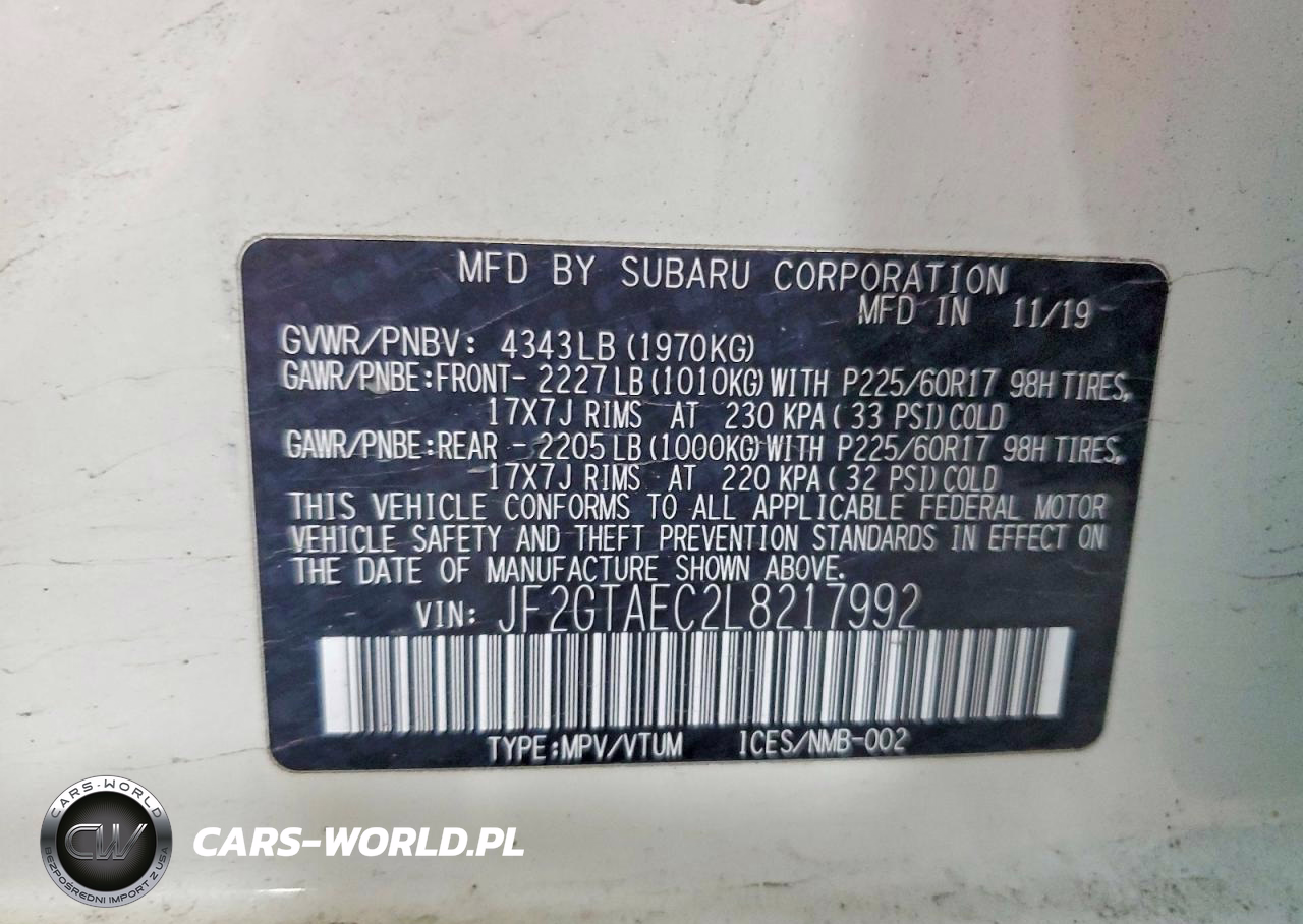 Copart Nr: C-46567456 VIN: JF2GTAEC2L8217992 Port: Elizabeth, NJ