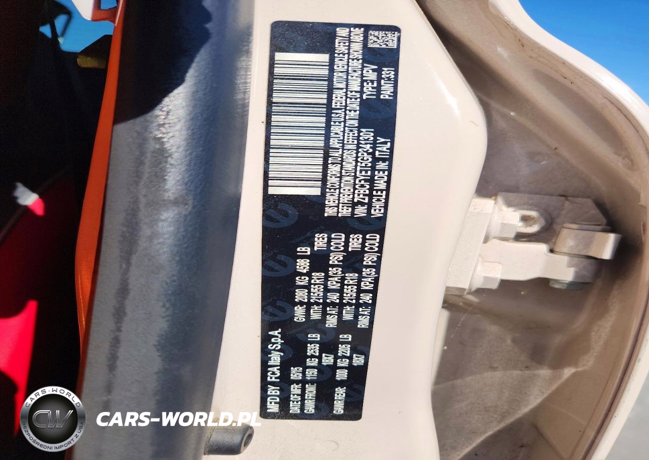 Copart Nr: C-46595756 VIN: ZFBCFYET5GP341301 Port: Houston, TX