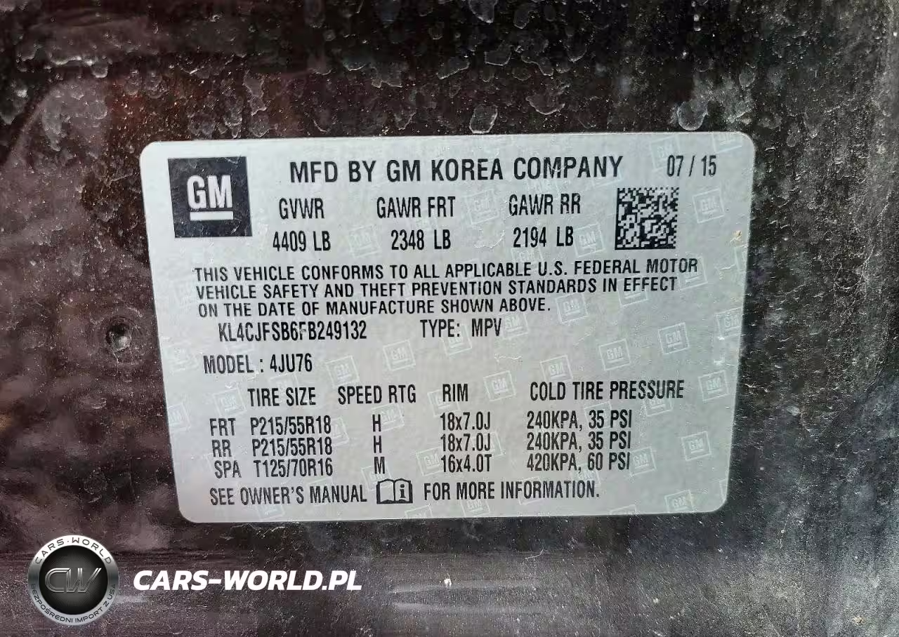 Copart Nr: C-46609496 VIN: KL4CJFSB6FB249132 Port: Indianapolis, IN