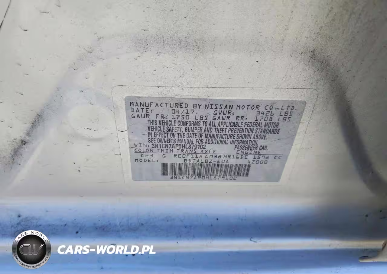 Copart Nr: C-46638766 VIN: 3N1CN7AP0HL879102 Port: Savannah, GA
