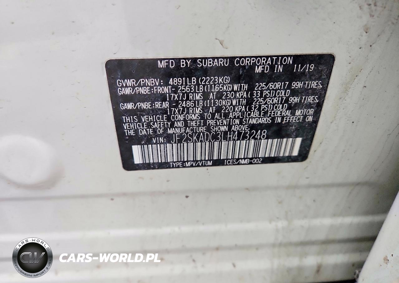 Copart Nr: C-46667706 VIN: JF2SKADC3LH473248 Port: Elizabeth, NJ