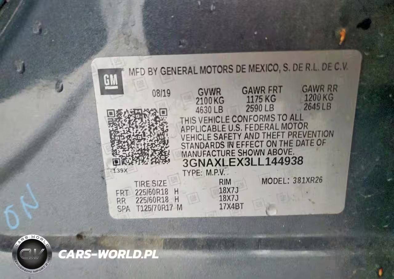 Copart Nr: C-46686716 VIN: 3GNAXLEX3LL144938 Port: Savannah, GA