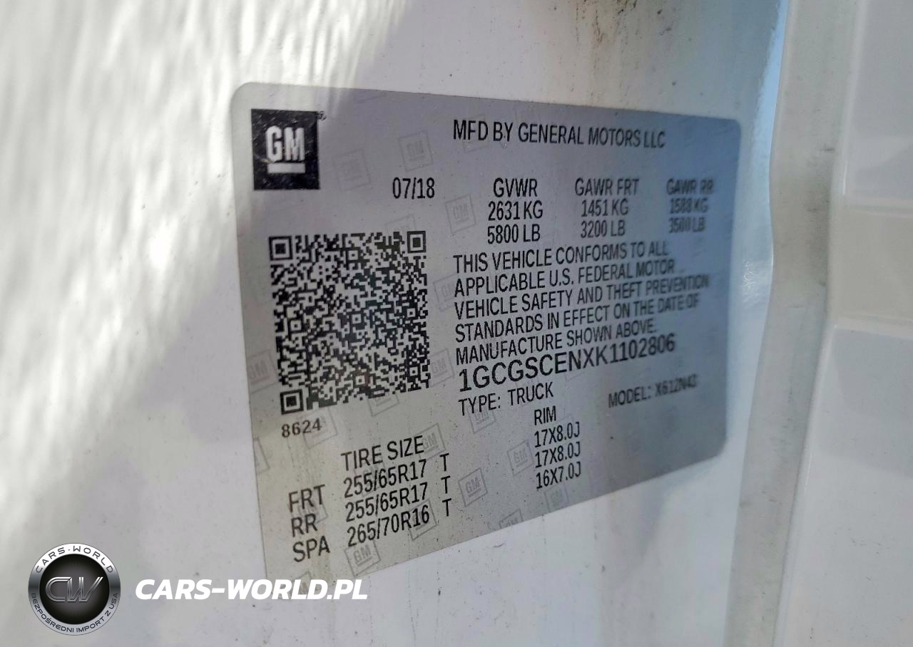 Copart Nr: C-46701156 VIN: 1GCGSCENXK1102806 Port: Los Angeles, CA