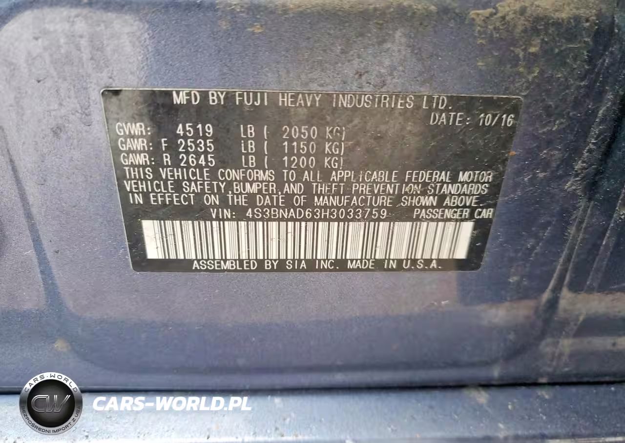 Copart Nr: C-46731066 VIN: 4S3BNAD63H3033759 Port: Elizabeth, NJ