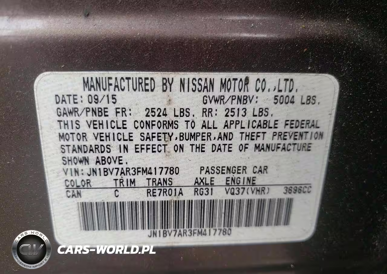 Copart Nr: C-46749576 VIN: JN1BV7AR3FM417780 Port: Elizabeth, NJ