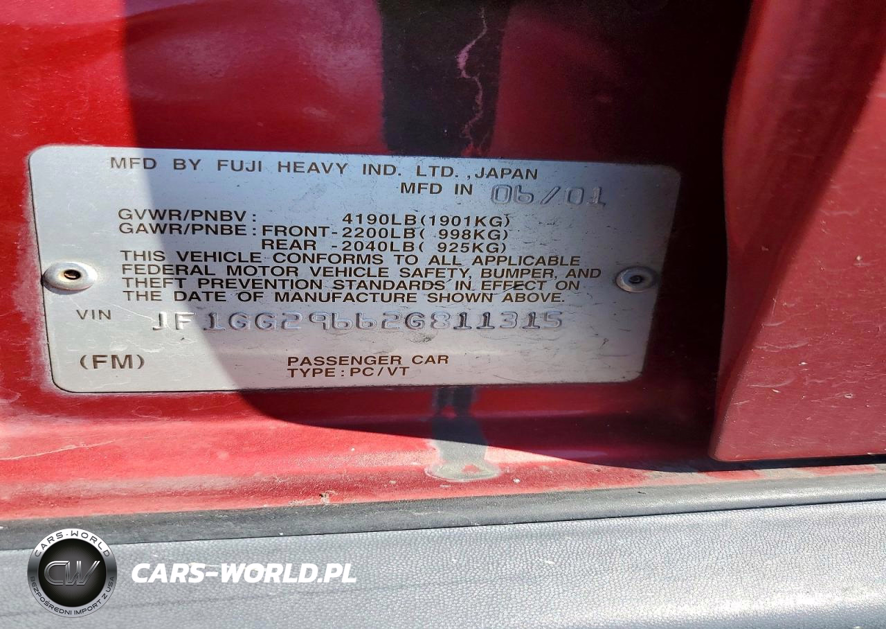 Copart Nr: C-46771436 VIN: JF1GG29662G811315 Port: Los Angeles, CA